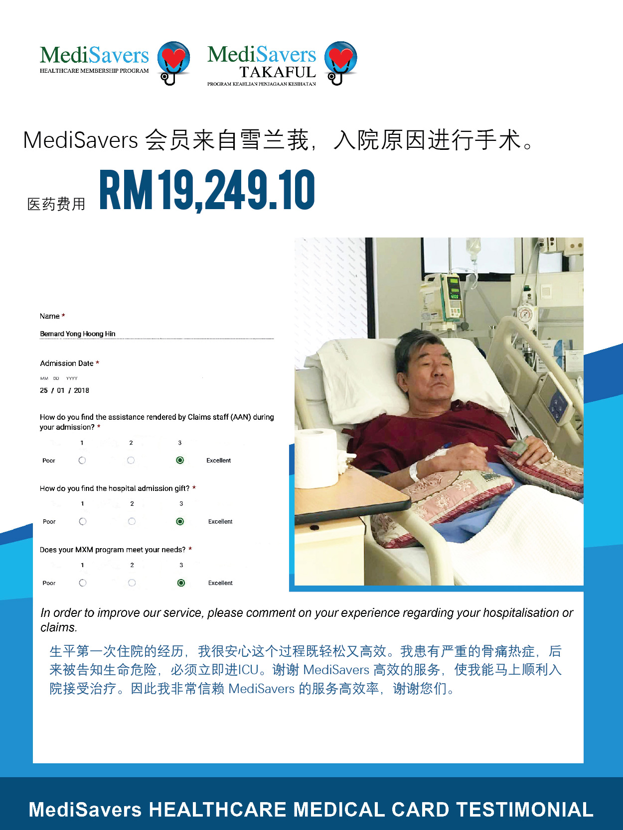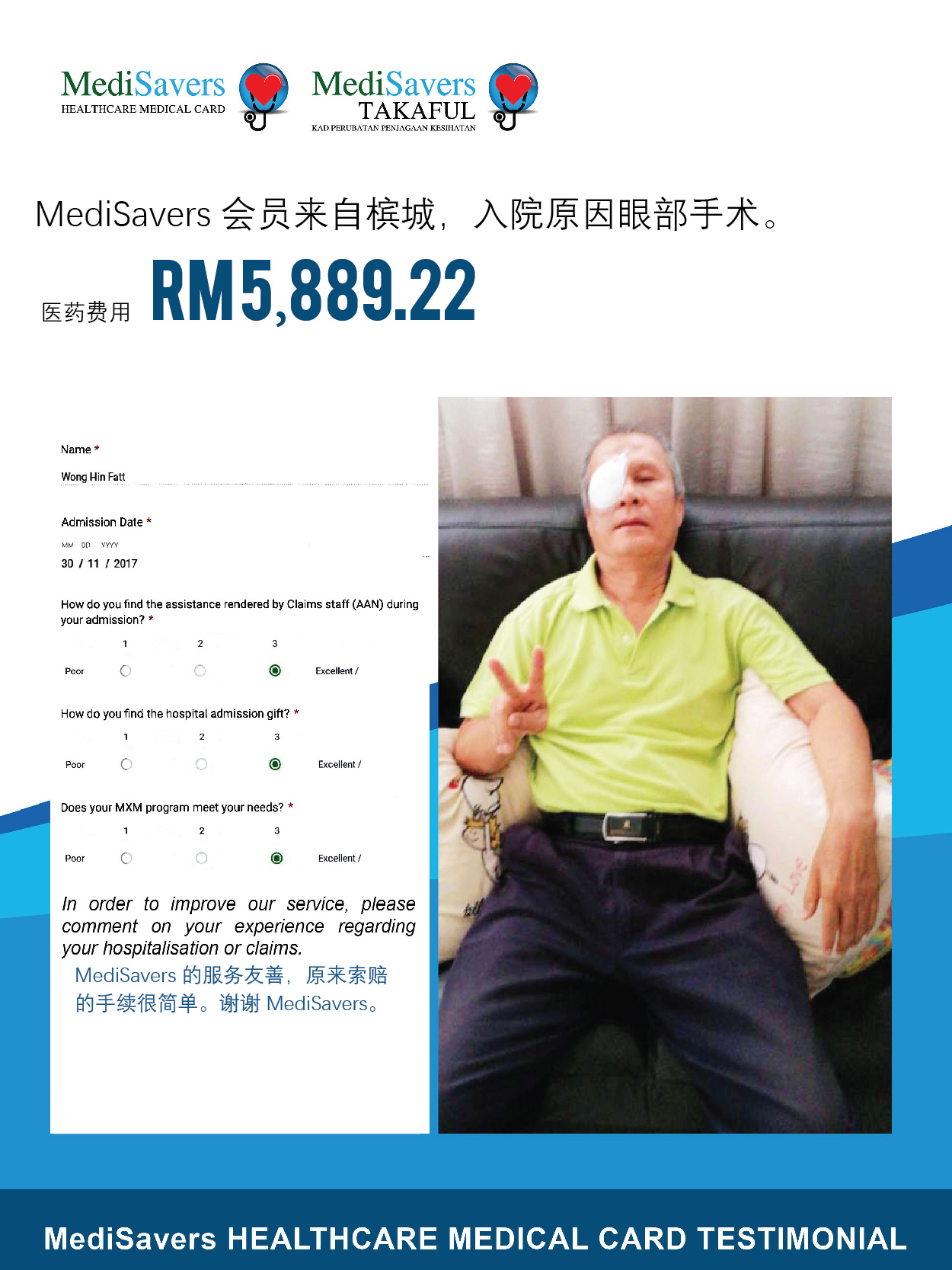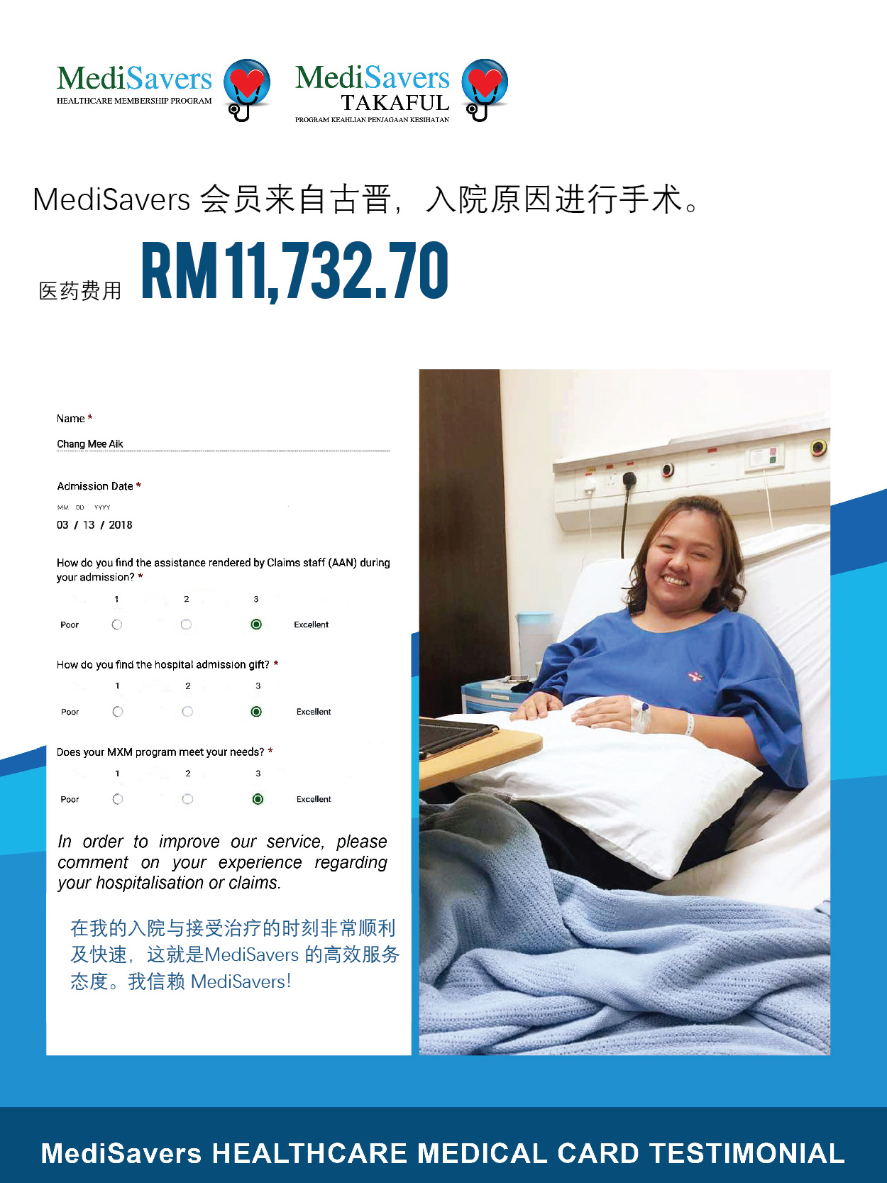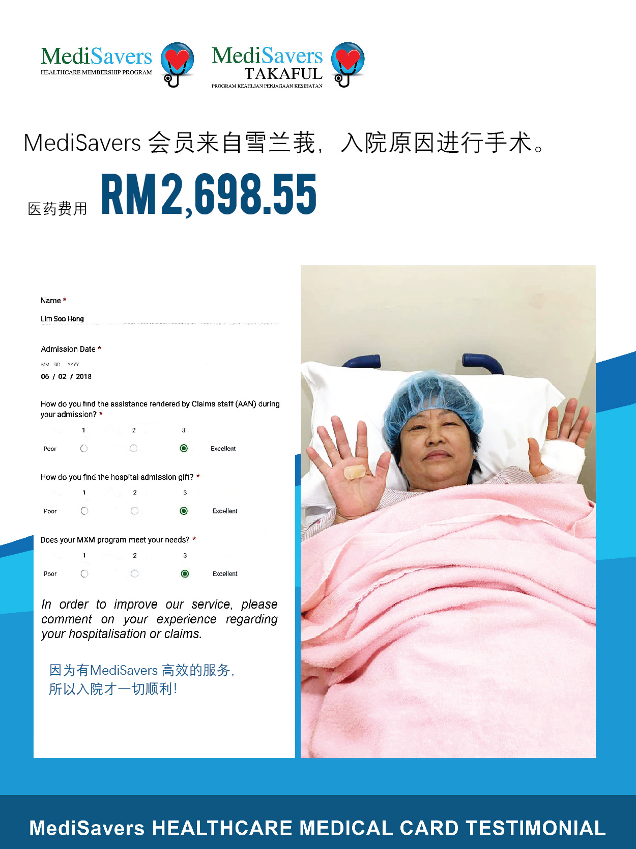 MediSavers 拥有专业的团队为您服务,无需担心入院与索赔的复杂程序。