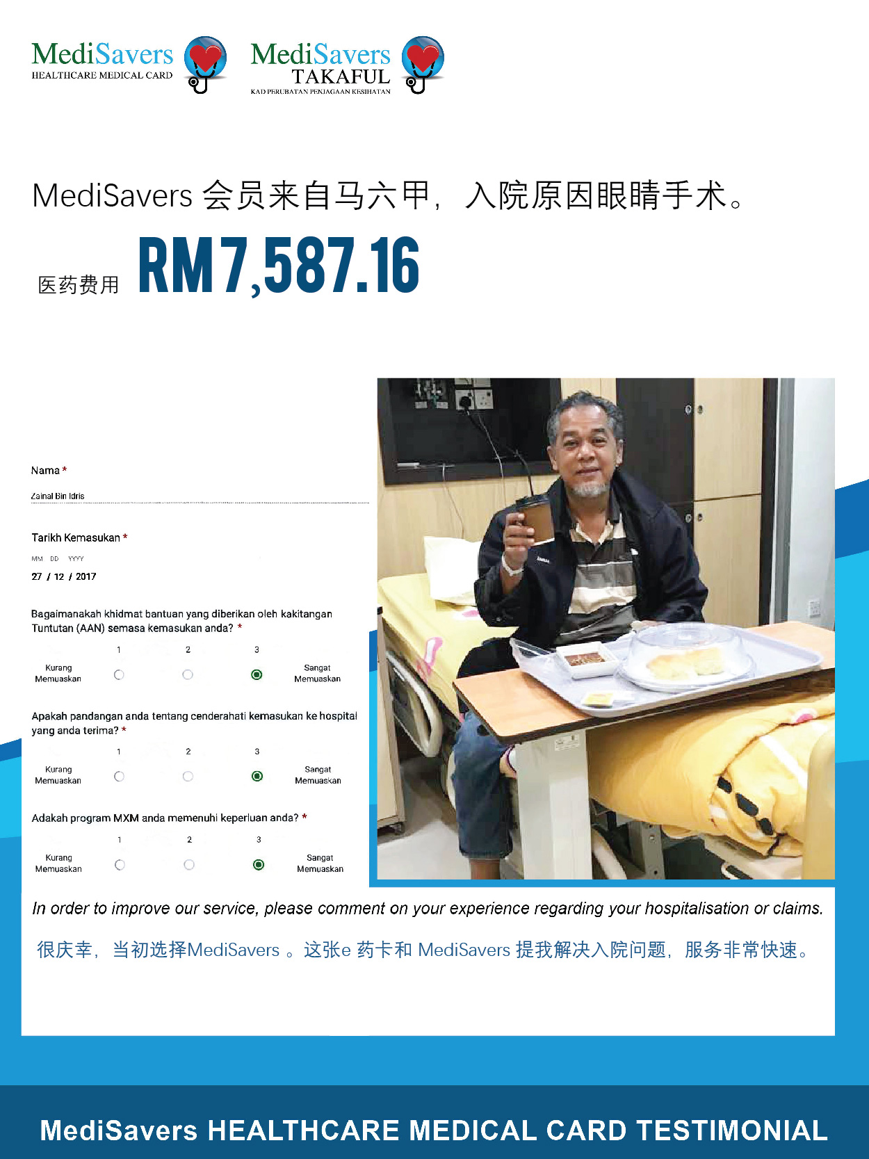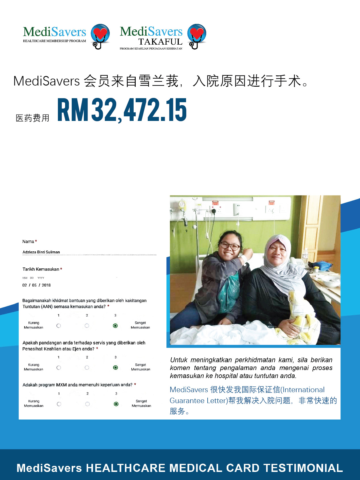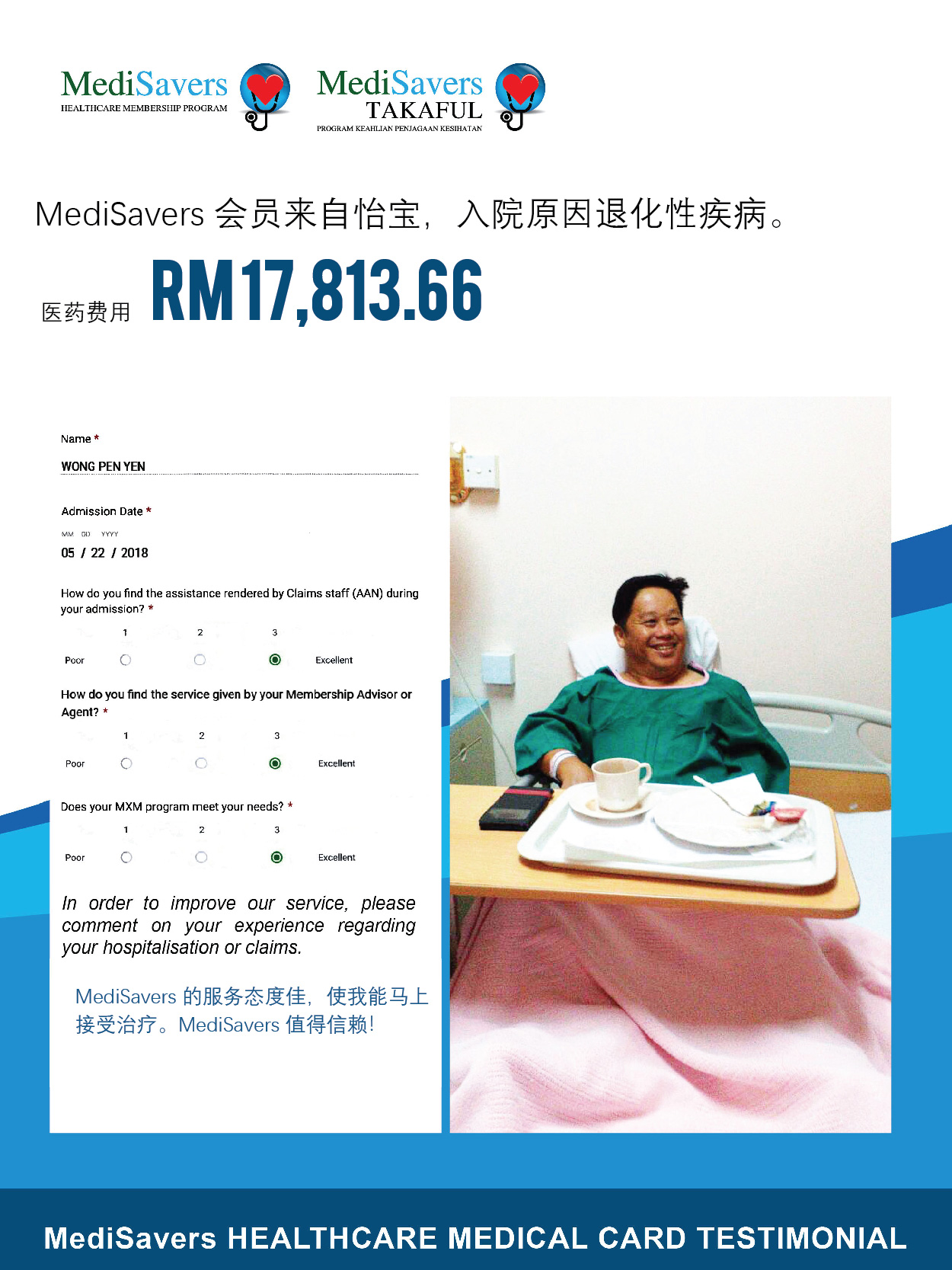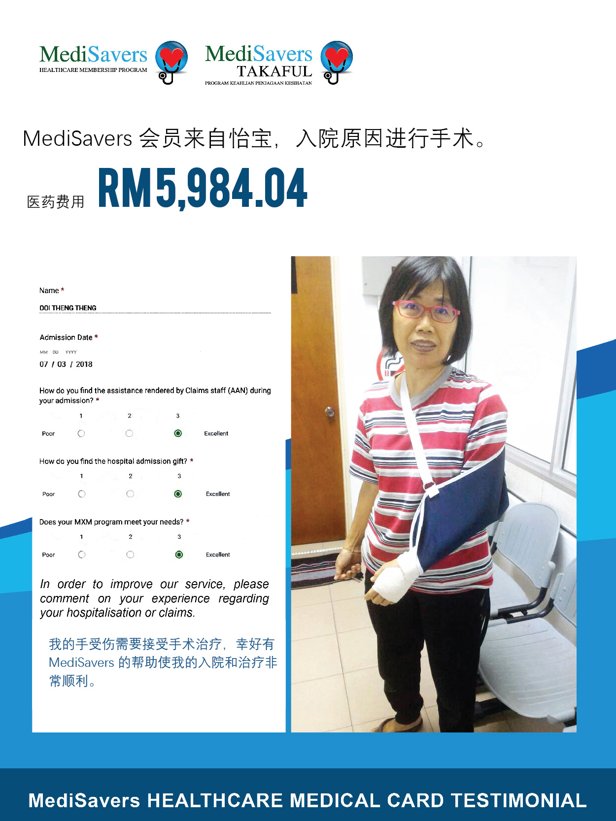 MediSavers 拥有专业的团队为您服务,无需担心入院与索赔的复杂程序。